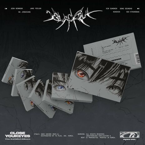 Out Box + Random Photocard (QR 1 P, Jacket 3 P, Selfie 1 P) + Limit Piece Keyring + Eyes Sticker (3 P) + Lyrics User Guide