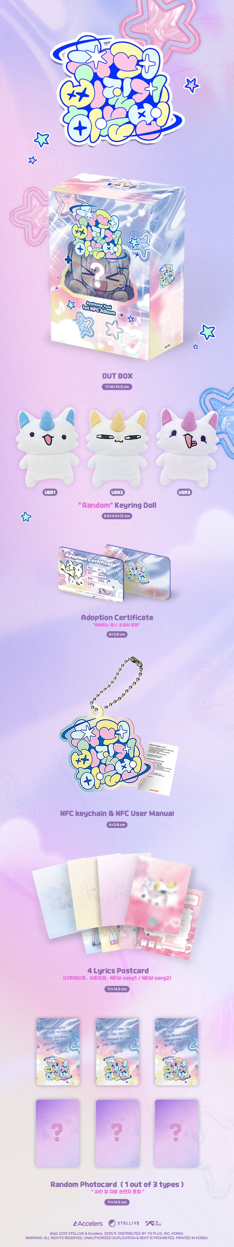 * Keyring doll + adoption certificate + NFC keychain & NFC user manual + lyric postcard + 1 random photocard]
