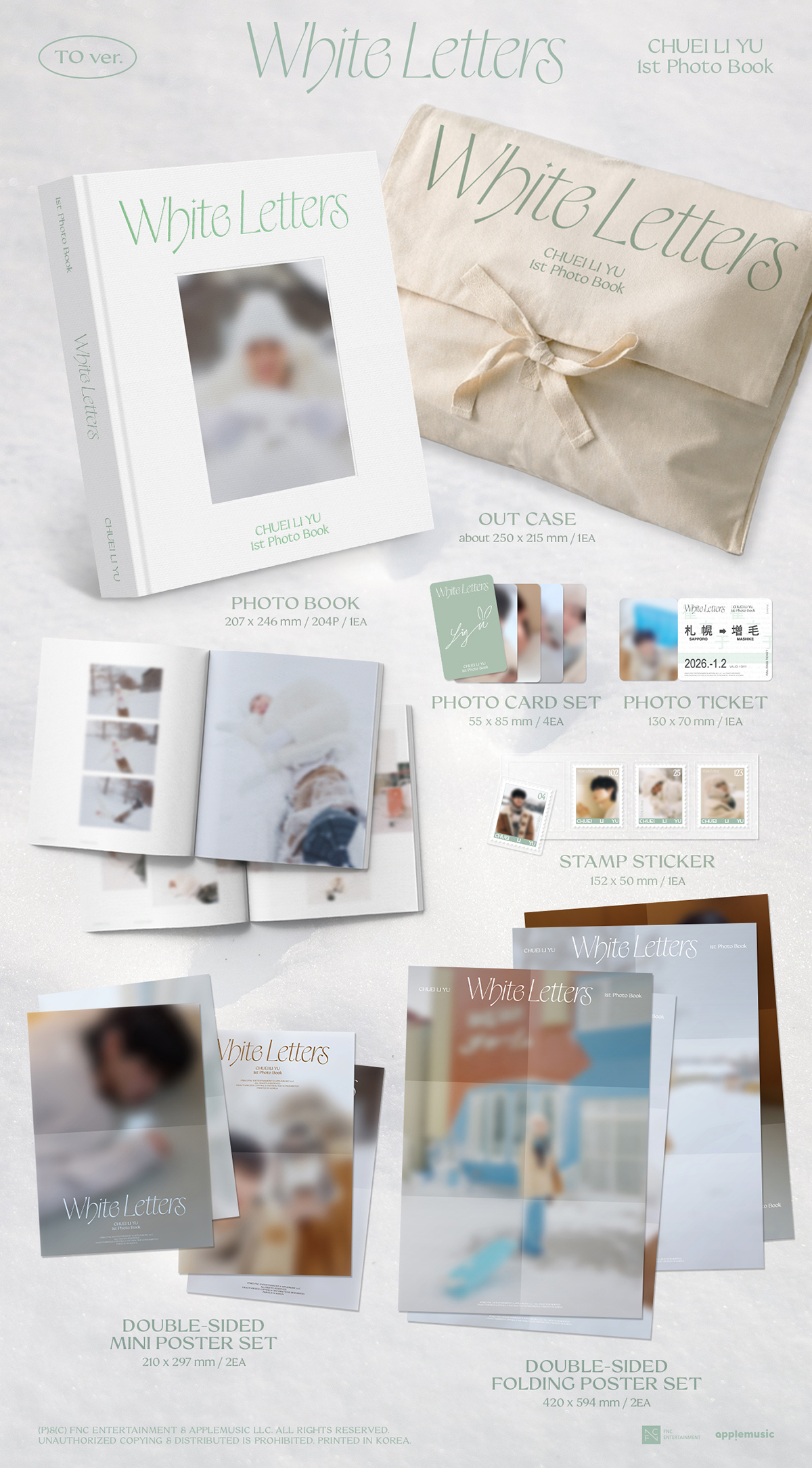 Out Case + Photobook (204 P) + Photocard (4 P) + Photo Ticket + Stamp Sticker + Double Sided Poster (Mini 2 P, Folding 2 P / On Pack)